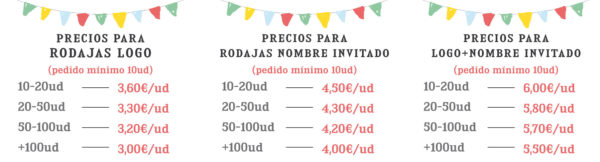 Rodajas de madera natural de 8-10cm de diámetro y 1cm de grosor.